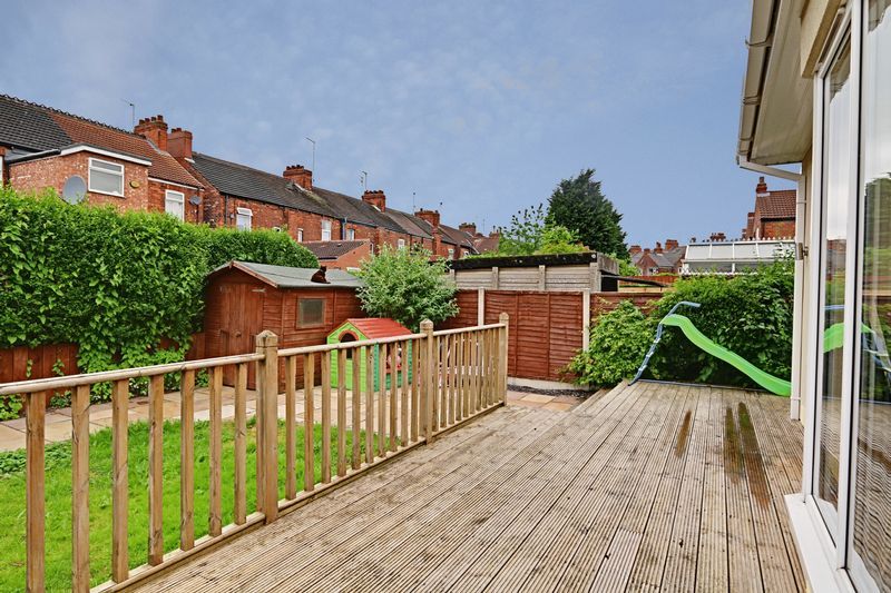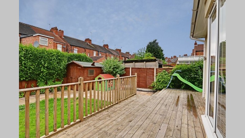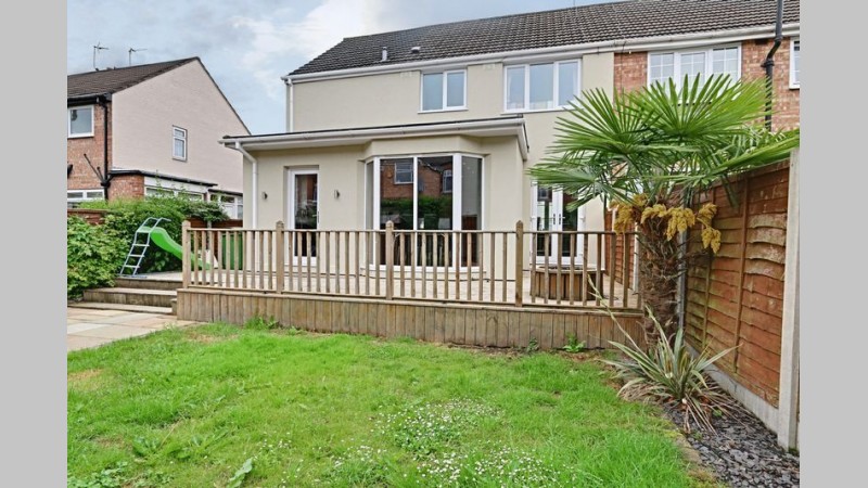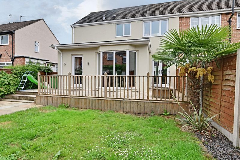 The property has a pull onto private driveway leading up to an integral garage, side access leads through to a westerly facing rear garden with wooden decking which leads down to a staggered patio with lawned garden and timber panel fencing along the boundary.