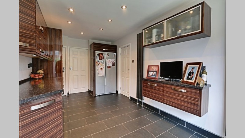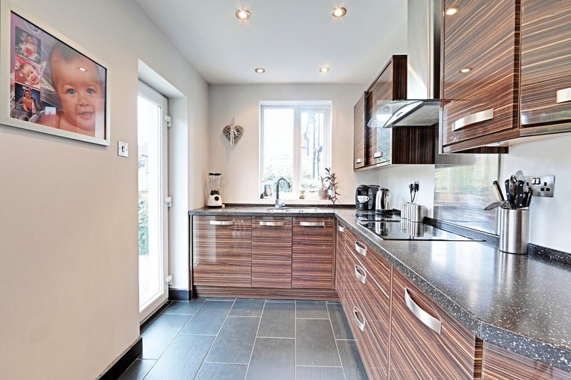 Take a look at this superb open plan kitchen adapted to suit a modern family with feature bay window over the garden. The property has been refurbished over recent years with the benefits of a pull onto private driveway, parking for two cars and integral garage. The accommodation briefly comprises entrance hall with solid oak flooring and modern chrome balustrade, the L-shaped open plan kitchen includes integrated appliances, through lounge, to the first floor are four well proportioned bedrooms and bathroom with three piece suite. The garden enjoys a westerly facing aspect, wooden decking, patio and lawned garden. The location is handy for many surrounding amenities including the train station and local shops.
