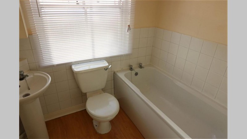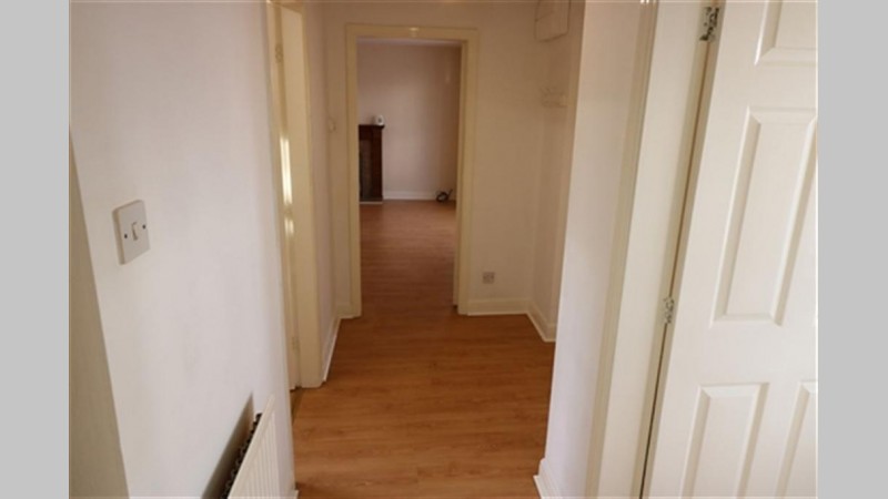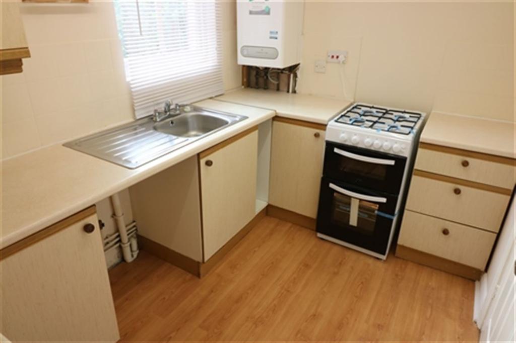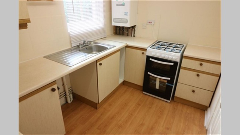 Entrance into hallway. Door into a kitchen with NEW COOKER and space for a fridge/freezer and washing machine.