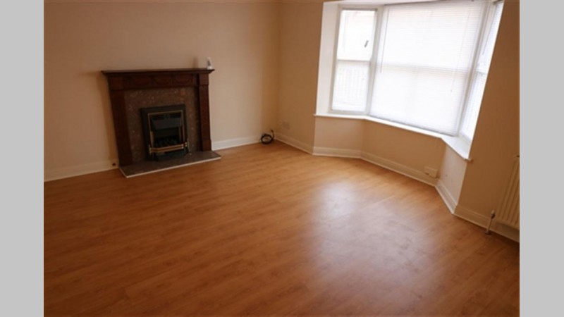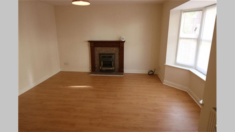 LARGE Living/Dining room with laminate flooring and a COAL EFFECT GAS FIRE with wooden surround.